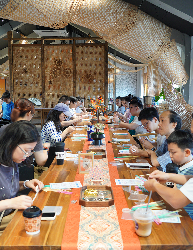 在竹編杯墊手作體驗(yàn)環(huán)節(jié),現(xiàn)場(chǎng)氣氛熱烈非凡。會(huì)員們圍坐在一起,面前擺放著竹篾、剪刀等工具,老師耐心講解、親手示范,大家認(rèn)真學(xué)習(xí),眼睛緊盯著老師的動(dòng)作,手中的竹篾在指尖穿梭,遇到困難時(shí),大家相互交流、互相請(qǐng)教,經(jīng)過一番努力,一個(gè)個(gè)獨(dú)具創(chuàng)意的竹編杯墊逐漸成型,有的古樸質(zhì)感、有的編織成獨(dú)特紋理,展現(xiàn)出了會(huì)員們的創(chuàng)新思維。圍爐冰茶是夏天的特色項(xiàng)目,大家一邊品嘗著大涼山酸奶,搭配精致茶點(diǎn)和水果,一邊分享工作生活中的趣事。